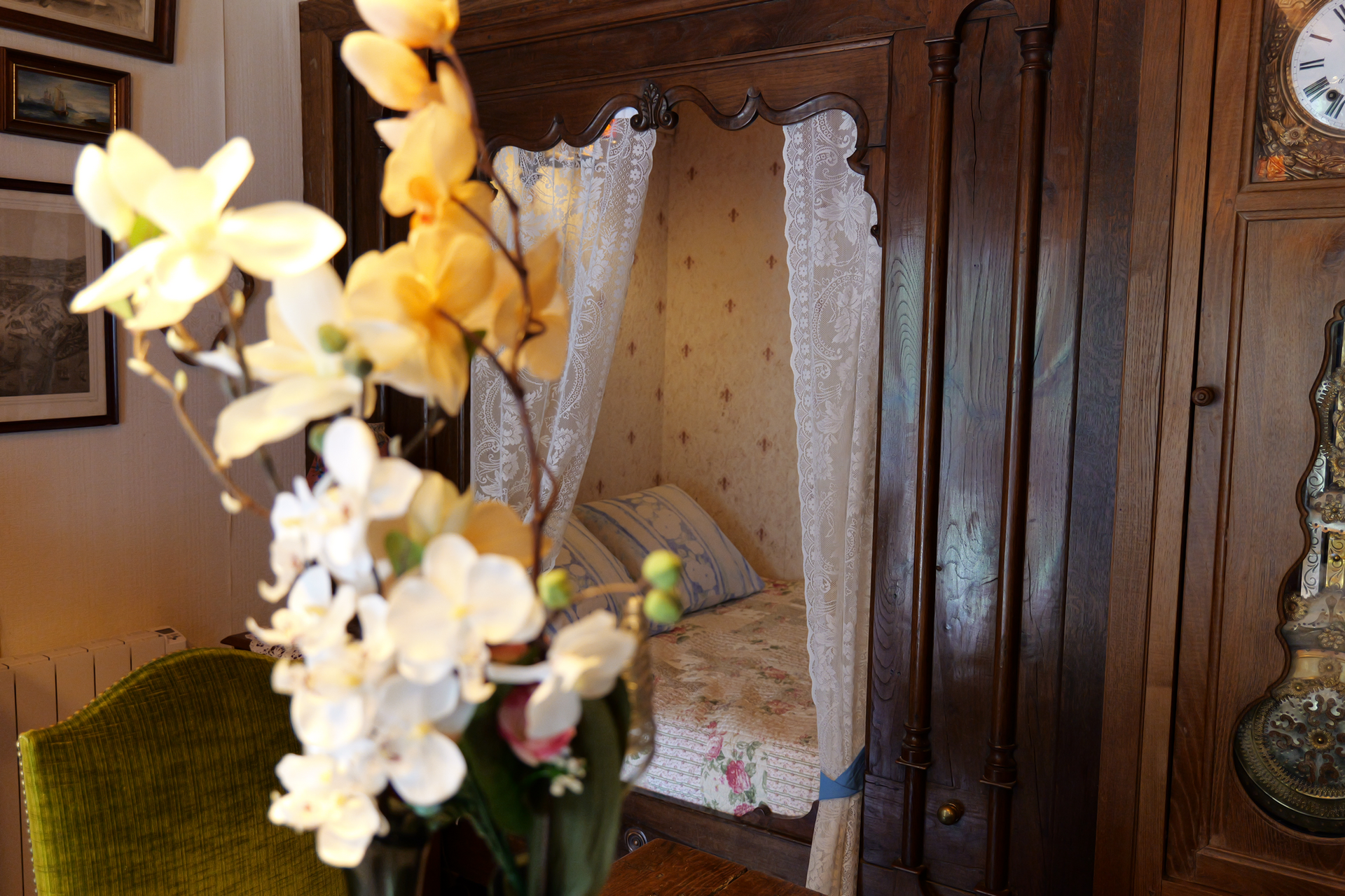 La chambre donne sur le jardin "façade" avec terrasse. Le calme absolu.