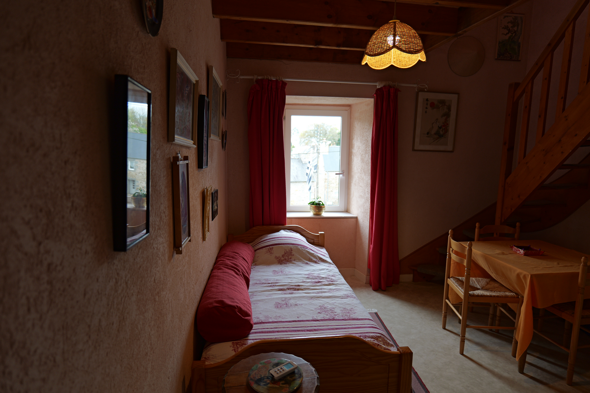 Cette grande chambre au premier étage, équipée de 2 lits (1 grand lit double et un lit canapé simple) vous offre le confort simple et adapté pour des nuitées parfaites. Salle de bains et cuisine équipée, vu sur la place de Lanloup pour le plaisir simple de votre séjour.