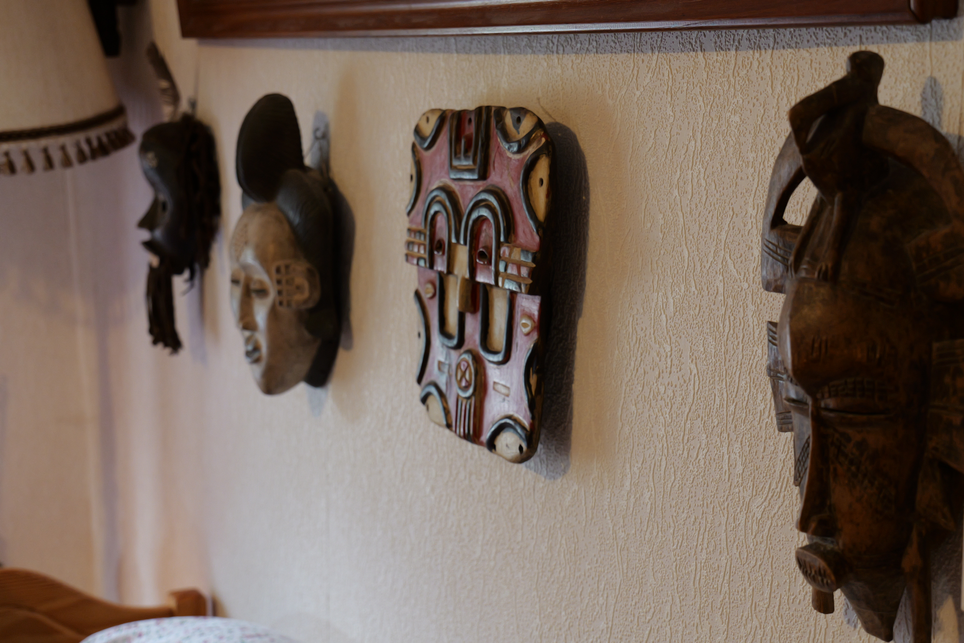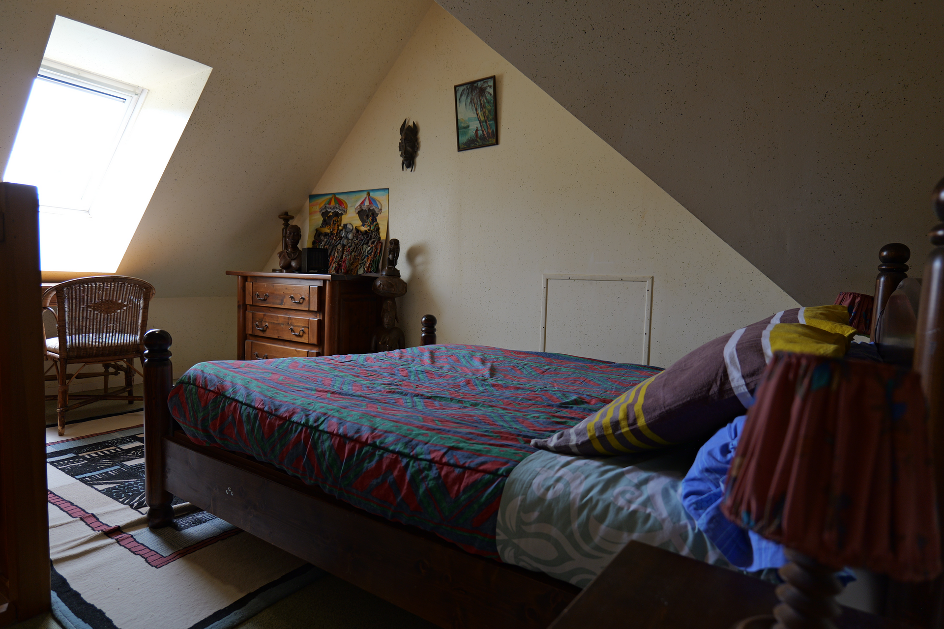 Cette grande chambre bat au rythmes africains. Un grand lit double et un lit simple permettent d'accueillir 3 personnes dans le plus grand confort. Cuisine équipée, table et chaises, chambre en duplex et salle de bain privative.